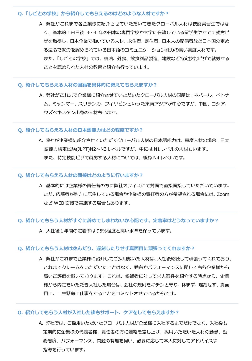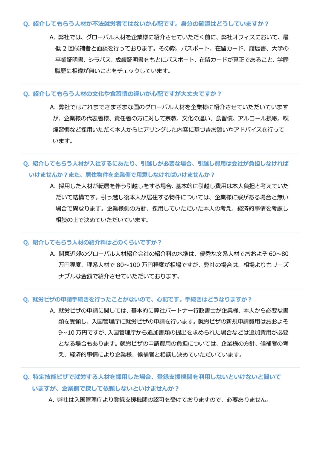 グローバル人材紹介サービス Q & A